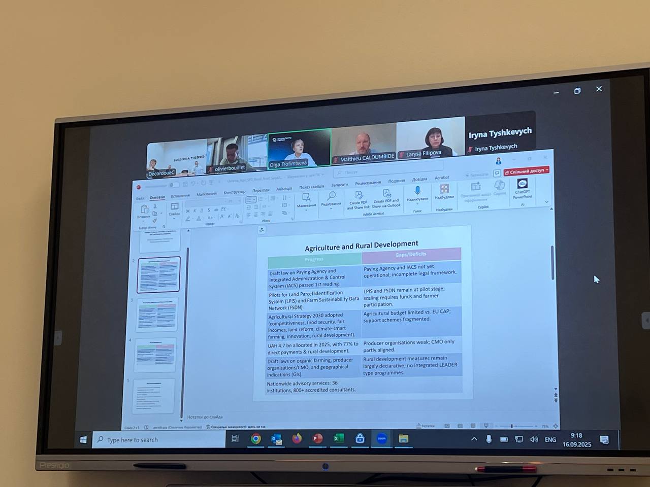 Nous avons eu le plaisir d’entendre Olga Trofimtseva, cheffe du secteur agriculture et sécurité alimentaire à l’Ukraine Facility Platform, pour une présentation sans langue de bois sur l’intégration de l’Ukraine dans l’Union européenne.