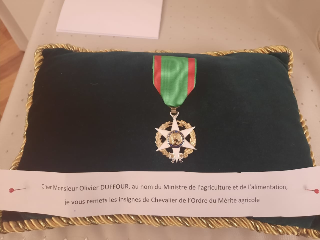 Olivier Duffour a reçu la médaille de chevalierde l’ordre du mérite agricole !