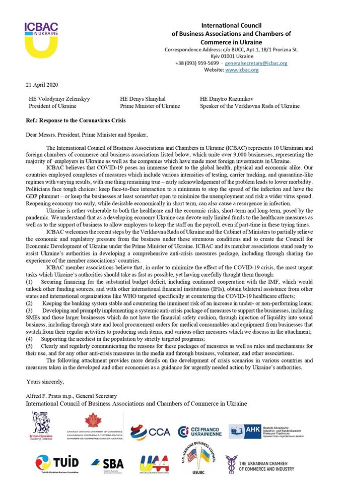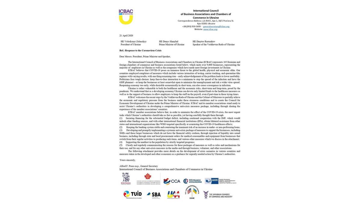 STATEMENT BY INTERNATIONAL COUNCIL OF BUSINESS ASSOCIATIONS AND CHAMBERS IN UKRAINE IN SUPPORT OF UKRAINE’S ECONOMY AND BUSINESSES DURING THE CORONA-CRISIS