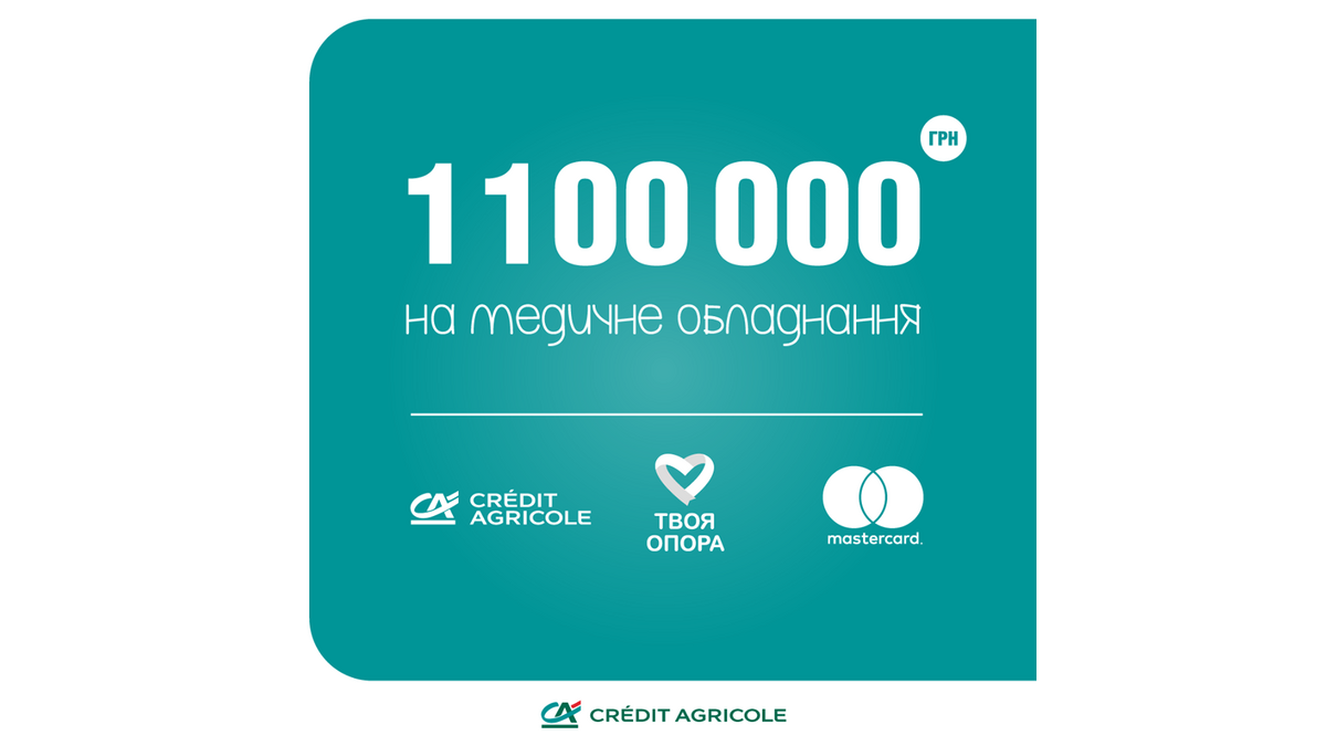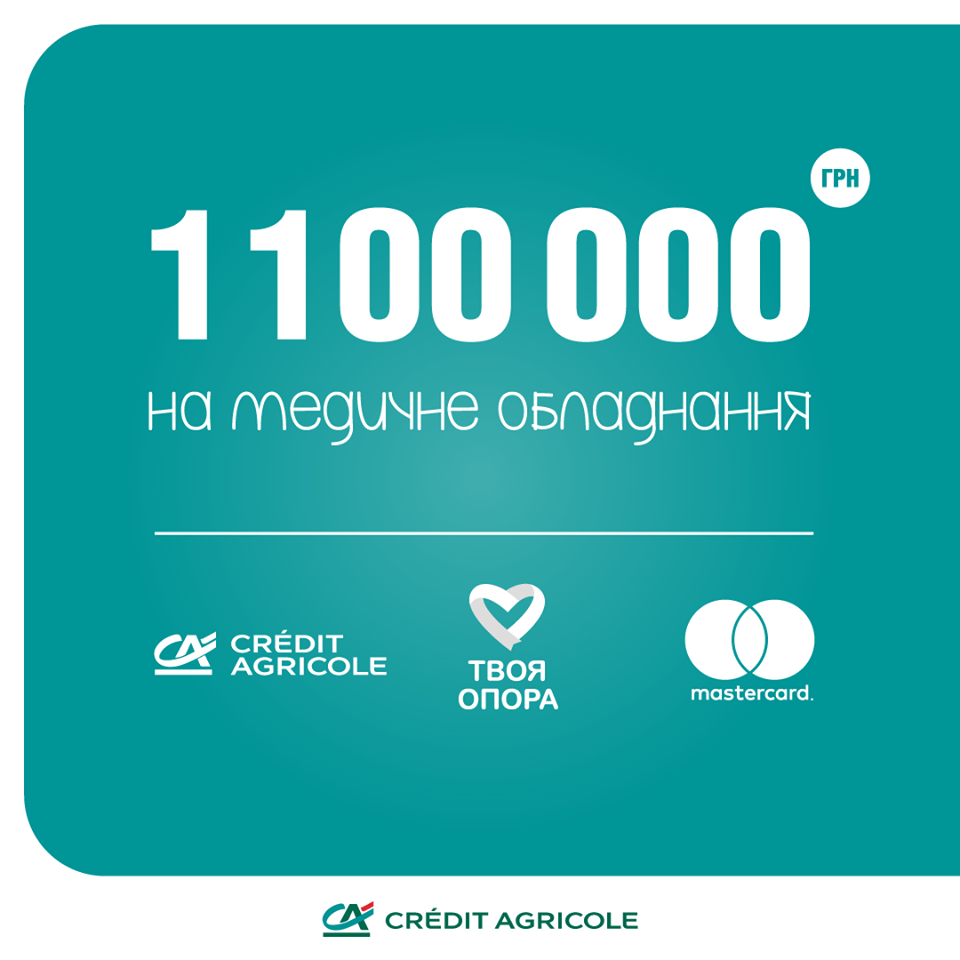 Mastercard та Креді Агріколь Банк об’єднали зусилля для боротьби з COVID-19 в Україні. За підтримки фонду Твоя опора компанії придбали медичне обладнання (дефібрилятор, монітори пацієнта, пульсоксиметри та інфузійні насоси) для двох лікарень: «Тернопільської міської дитячої комунальної лікарні» та «Київської міської клінічної лікарні №17». Обладнання буде доставлено до кінця травня.