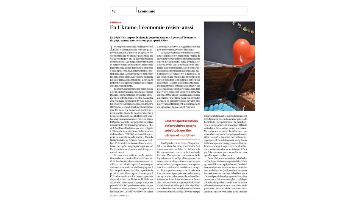 Чудова стаття, опублікована сьогодні вранці в #LExpress ? про витривалість підприємств в Україні: ?економічна активність як зброя проти росії.