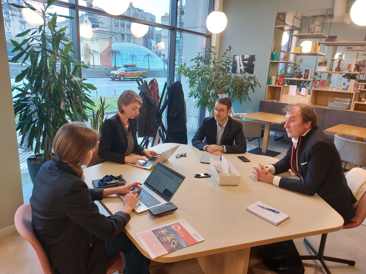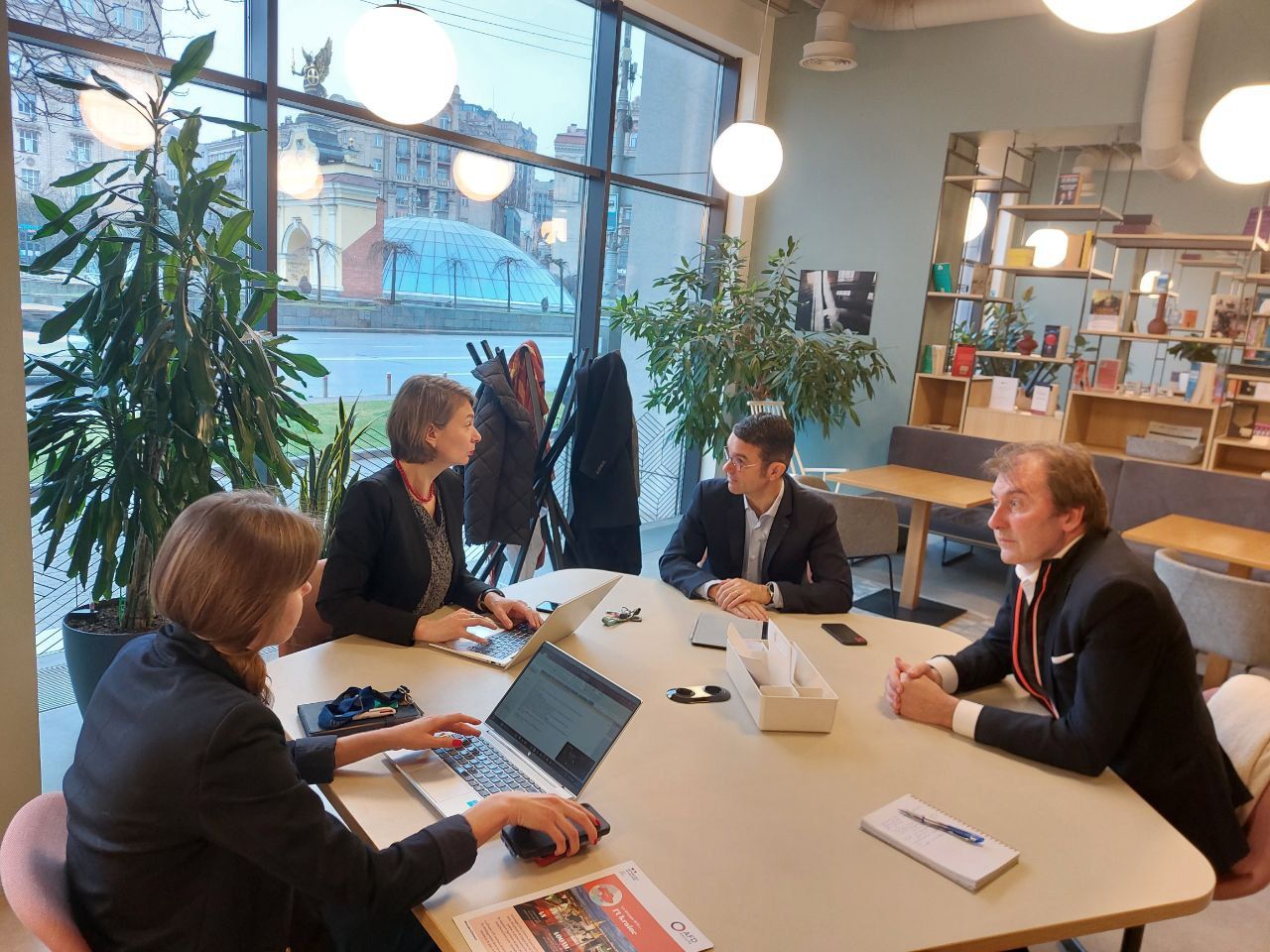 25 березня, в рамках візиту Бертрана Барр'є, президента CCIFU, та Грегуара Датте, голови комітету з реконструкції, Франко-українська торгово-промислова палата зустрілась з Аксель Нос (AFD Україна) та Софією Олійник (Expertise France Україна).