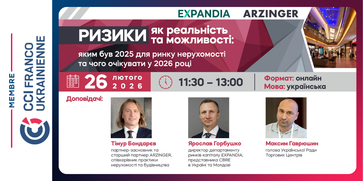 У межах другого спільного вебінару компаній ARZINGER та EXPANDIA експерти підсумують результати 2025 року на ринку комерційної нерухомості України та окреслять ключові інвестиційні тренди. Вебінар відбуватиметься у форматі презентацій доповідачів та Q&A-сесії, де відвідувачі матимуть змогу поставити експертам свої питання.